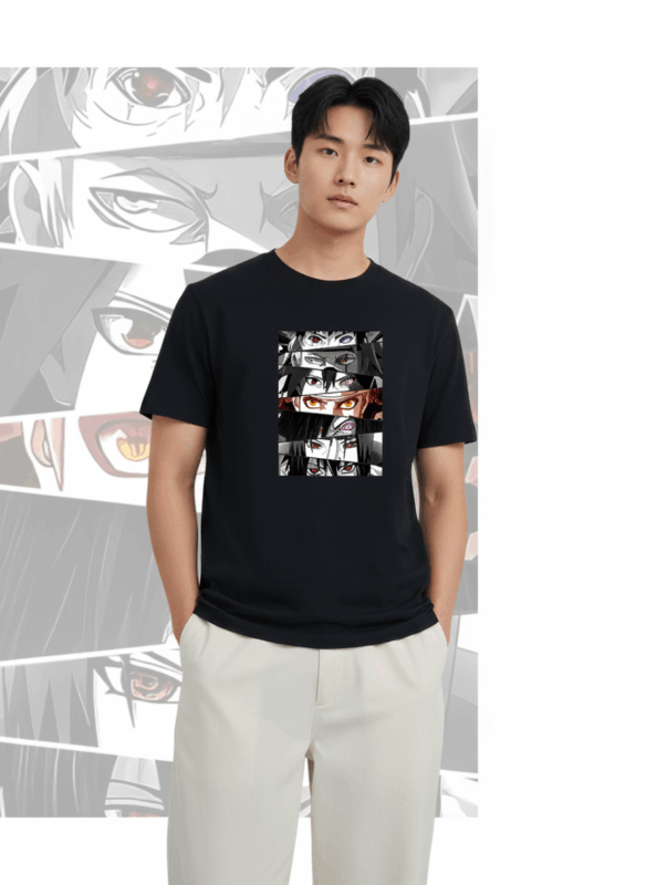 Oversized drop shoulder tee featuring intense Itachi-inspired artwork and striking red-black manga elements. Heavyweight 200+ GSM cotton for a bold, stealthy streetwear look.